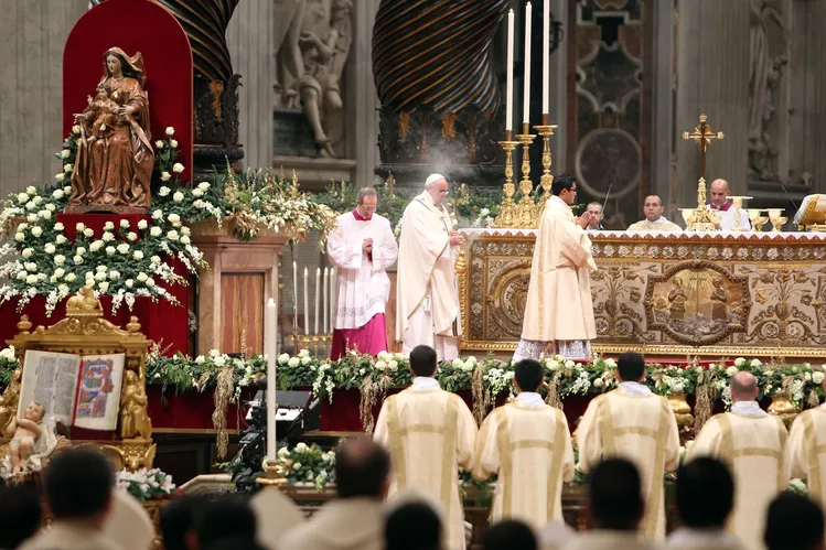 대성당 내부에서는 교황이 주재하는 장엄한 자정 미사를 통해 크리스마스의 정수가 정점에 이릅니다.