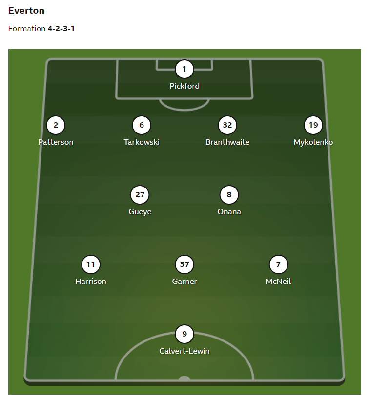 비카리오는 50분 동안 칼버트-르윈의 공격이 그를 휩쓸고 지나가는 것을 막기 위해 거의 할 수 없었지만, VAR이나 제임스 가너의 공격에 의해 구원을 받았고, 그 직후 먼 포스트의 바깥쪽을 강타했습니다.