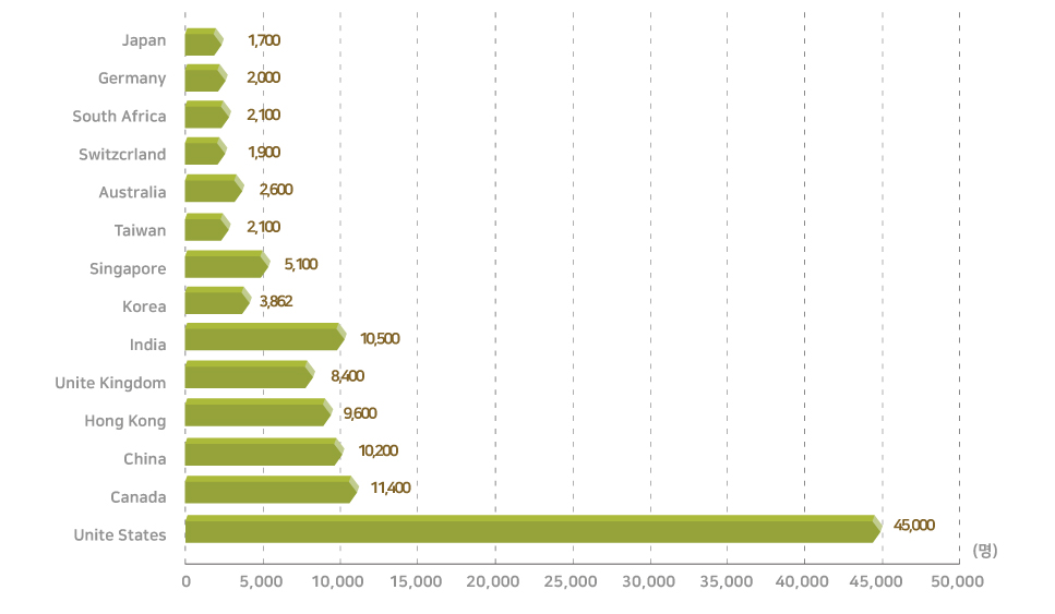 | Unite States | 45,000 | Singapore | 5,100 |