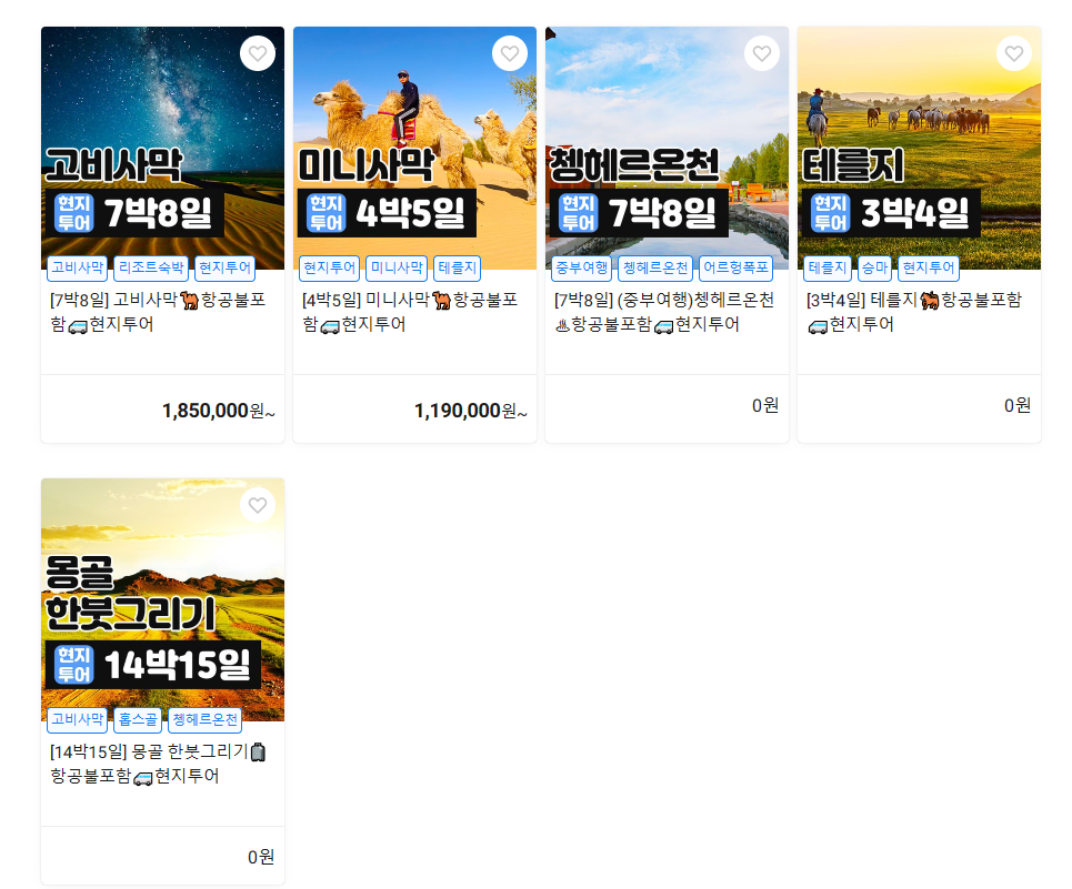┕ 고객님이 이용하시는 항공에 따라 인천공항 개별수속 후 출국합니다. 이티켓, 여권을 꼭 챙겨주세요. 가이드와 미팅은 몽골공항에서 이루어 집니다.