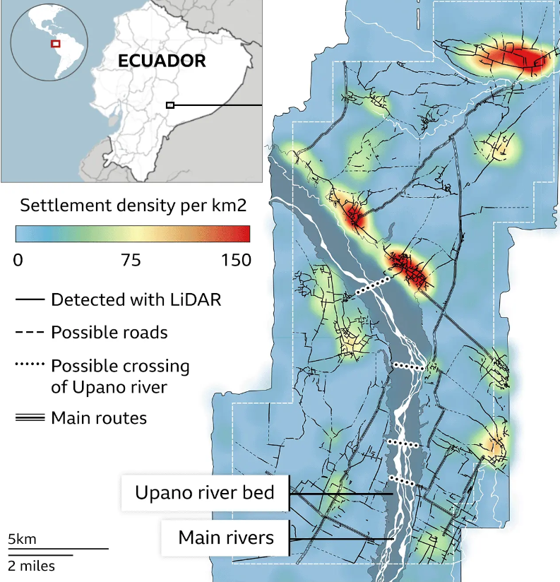 에콰도르 동부의 우파노 지역에 있는 집들과 광장들은 놀라운 도로망과 운하망으로 연결되어 있었습니다.