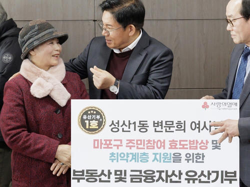 변씨는 최근 가정 형편이 어려워 배고프고 어려운 이웃들을 돕는 데 써달라며 마포복지재단에 전 재산인 집과 금융 자산 약 4억2천만원 기부를 약정했다. 마포구와 마포복지재단은 이날 오후 유산 기부식 행사를 열고 변씨에게 감사를 표했다.