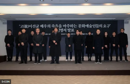문화예술 관련 29개 단체를 중심으로 결성된 ‘문화예술인 연대회의’(이하 연대회의)는 12일 서울 중구 프레스센터에서 기자회견을 열고 '고 이선균 배우의 죽음을 마주하는 문화예술인의 요구' 성명을 발표했다.