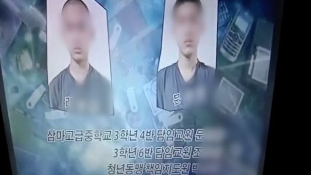 북한 '학습제강' 영상 속 한 장면. 원본에는 이름과 얼굴이 모두 공개됐지만, 기사에서는 비공개 처리했다 (샌드연구소 제공)