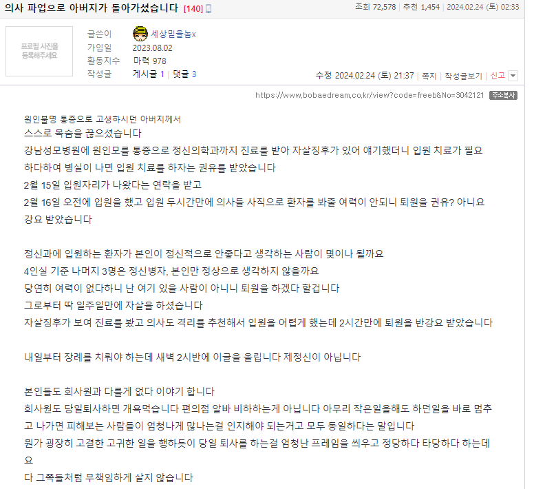 의사 파업으로 인한 아버지가 돌아가셨습니다.-보배드림 퍼옴_글
