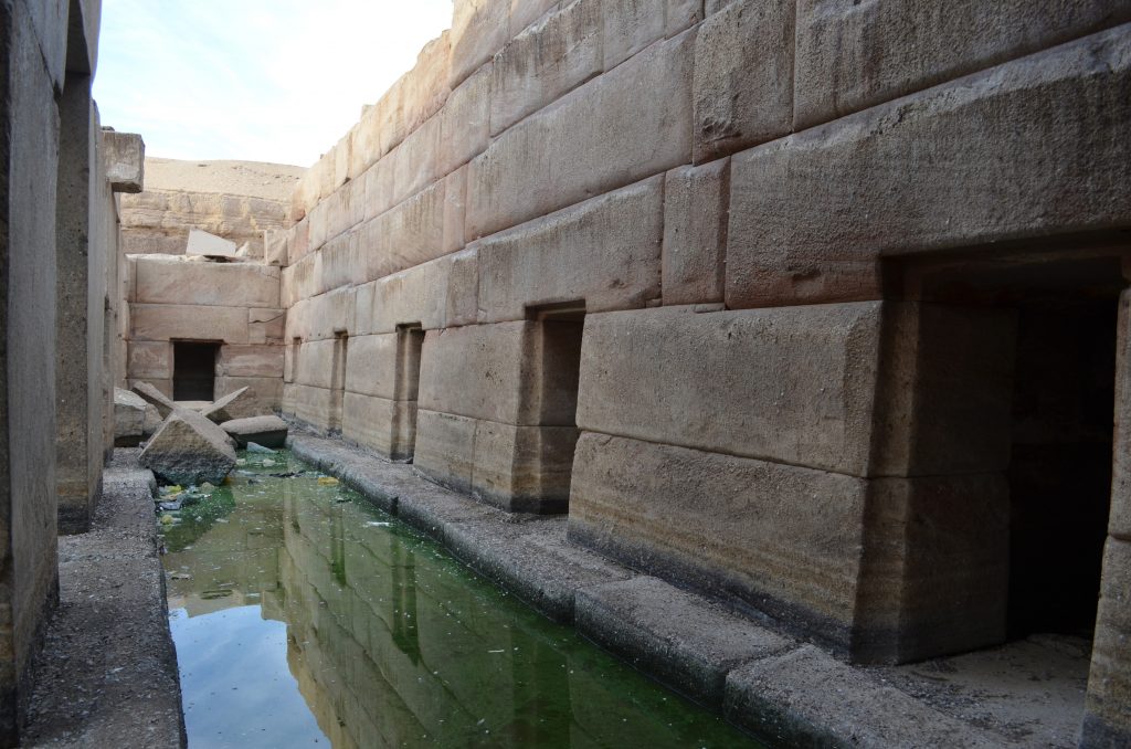 Osireion은 단지의 나머지 부분보다 낮은 수준에 있을 뿐만 아니라 Osireion에도 비문이 없습니다.
