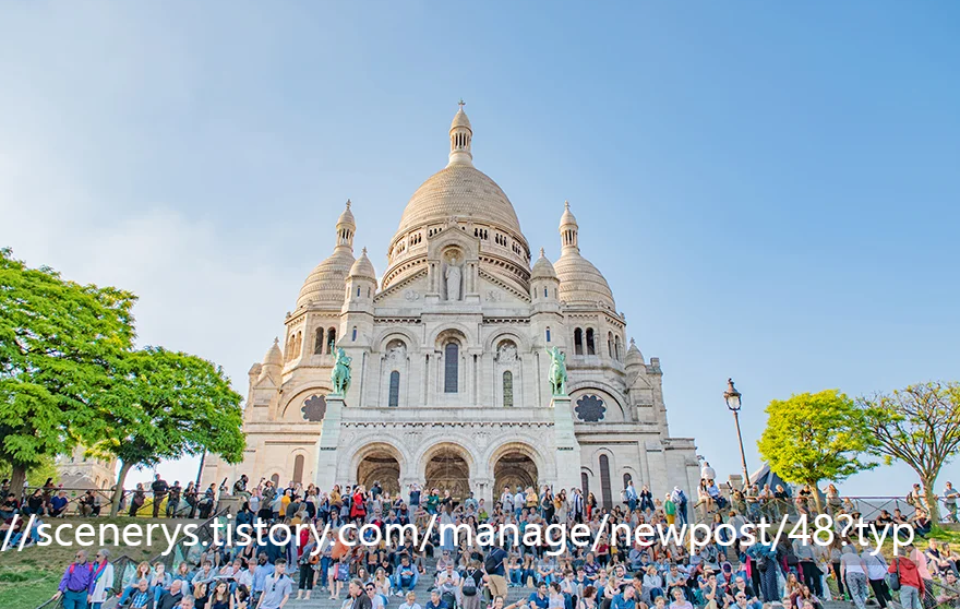 3. 사크레쾨르 대성당: 몽마르트 언덕의 가장 유명한 랜드마크는 사크레 쾨르 대성당(Sacré-Cœur Basilica)입니다. 이 백색 대성당은 독특한 로만-비잔틴 스타일로 건축되었습니다. 옥상에서는 파리 전경을 감상할 수 있는 아름다운 전망이 펼쳐집니다.