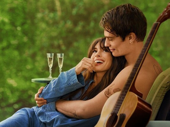 이 작품의 원작은 놀랍게도 팬픽이다. 현시점 세계 최고의 아이돌 그룹인 ‘원 디렉션’의 막내 해리 스타일스를 주인공으로 쓴 팬의 소설을 영화로 각색했다. ‘최애와의 연애’라는 점에서 요즘 인기인 ‘선재 업고 튀어’(tvN)도 연상된다. 손목시계가 두 사람을 연결해주는 것도 비슷하고 심지어 여자주인공의 이름도 ‘솔’이다. 변우석과 김혜윤의 훌륭한 연기가 시공간을 넘나드는 ‘선재 업고 튀어’의 개연성을 완성한 것처럼, 매력적인 앤 해서웨이와 요즘 가장 핫한 배우 니컬러스 갈리친이 비현실적으로 보이는 모든 상황에 리얼리티를 부여했다. 니컬러스 갈리친은 이번 연기를 위해 방탄소년단(BTS)의 영상들을 많이 봤다고 한다. 블랙핑크 제니의 팬으로도 유명하다.