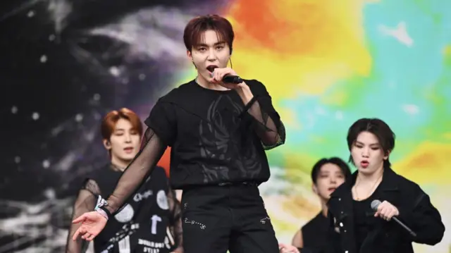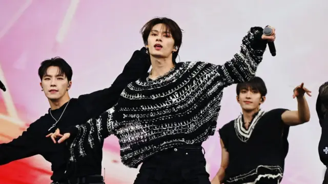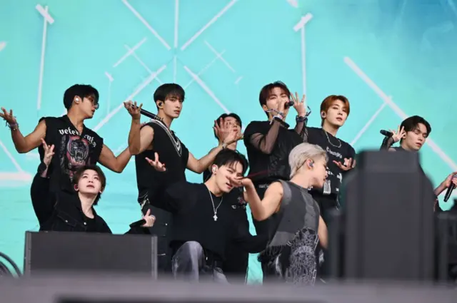 13명으로 구성된 이 케이팝 그룹은 현지시간 28일 오후 무대에 올라 약 한 시간 동안 섬세한 안무와 매력적인 팝 멜로디를 선보이며 열렬한 팬들과 구경꾼들의 안목을 사로잡았다.