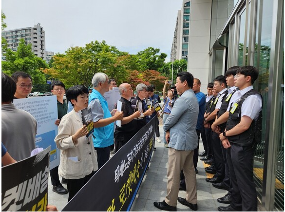 이날 기자회견에 나선 정씨의 아버지 정금석(69)씨는 “무릎이 닳아 없어질 것 같다던 아들, 자신이 개같이 일하고 있다던 아들을 생각하면 가슴이 찢어진다. 제 아들은 열심히 일한 죄밖에 없다”며 “인간을 인간답게 여기지 않는 기업 횡포가 제 아들을 죽음으로 내몰았다”고 말했다. 그러면서 “다시는 제 아들 같은 억울한 죽음이 없도록 해달라”고 호소했다.