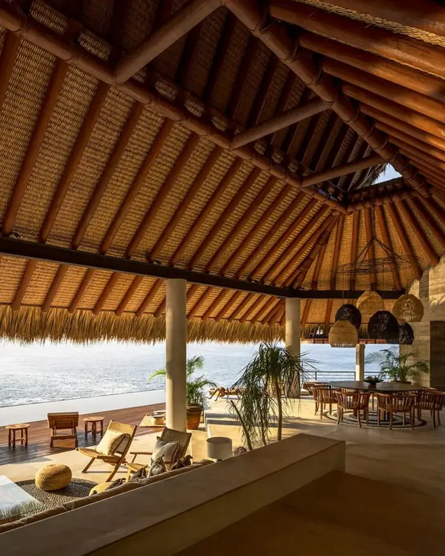 아카풀코에서 북서쪽으로 150마일 떨어진 곳에 있는 카사 아칸틸라도는 멕시코 해변과 사막에서 흔히 볼 수 있는 '팔라파'를 활용했다. 팔라파는 야자수 잎으로 만든 초가 지붕의 개방형 목조 구조물로, 그늘을 만들어주고 환기에도 도움을 준다. 그리고 이 팔라팔 아래로는 공용 공간이 있고, 이 공간에서 주변을 두른 데크와 인피니티 풀로 이어진다.