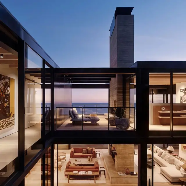 이 곳의 지형은 가파르고 바위가 많다. 때문에 이 집은 위층 입구에서 들어가도록 설계했다. 각 침실에는 자체 테라스를 갖췄고, 모든 각 침실에서 태평양을 볼 수 있게 만들었다. 그리고 이 건물에 콘크리트로 만든 두 개의 기하학적 공간 중 일부는 노출 콘크리트 디자인을 그대로 살렸다.