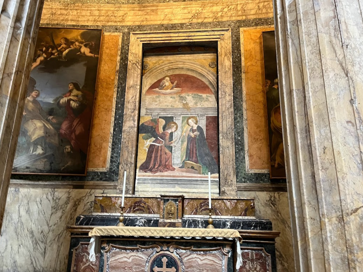판테온의 내부는 원형으로 설계되어 있으며, 중앙의 돔 아래에는 원주형 공간이 펼쳐져 있습니다. 내부는 대리석과 조각상으로 장식되어 있으며, 고대 로마 신들의 조각이 배치되어 있습니다. 신전의 벽면에는 그리스 신화와 로마 신화의 주요 신들을 기리기 위한 조각들이 장식되어 있습니다. 이로 인해 판테온은 단순한 건축물이 아니라, 고대 로마의 종교적 신념과 문화가 집약된 공간으로 여겨집니다.
