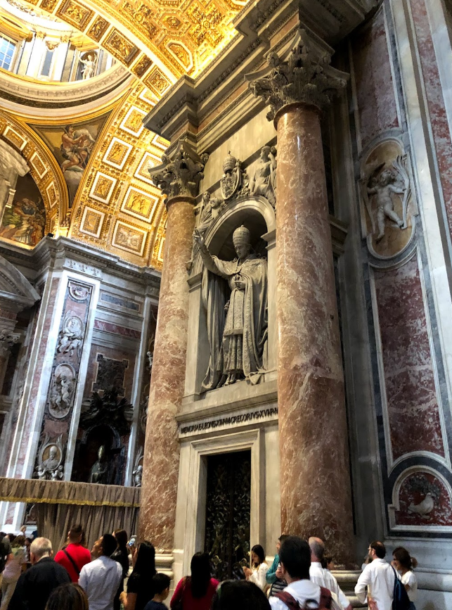 미켈란젤로의 피에타: 성당 입구에 위치한 이 조각은 미켈란젤로의 젊은 시절 작품으로, 그의 뛰어난 조각 기술을 보여줍니다.