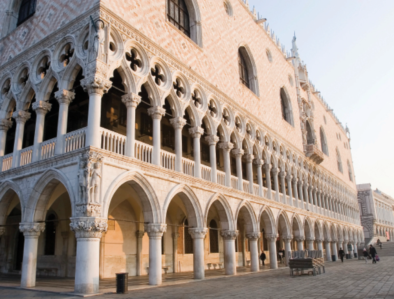 두칼레 궁전: 베네치아 공화국의 통치자였던 도제의 궁전으로, 고딕 양식의 대표적 건축물입니다.