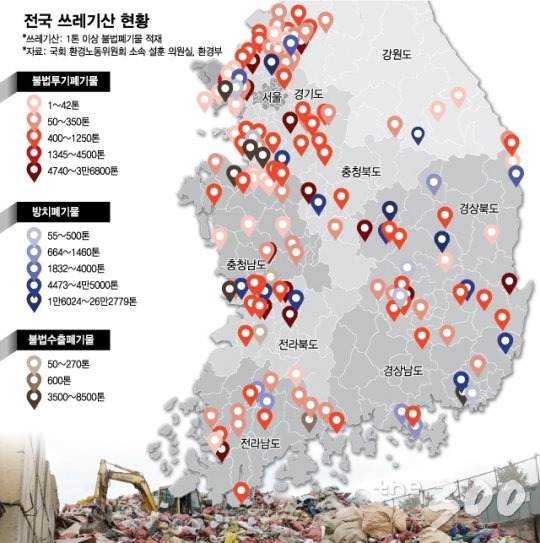 각 지역별로 보면 경기도 외에도 충청도와 전라도 등지에서도 많은 양의 쓰레기가 쌓여 있는 상황입니다.