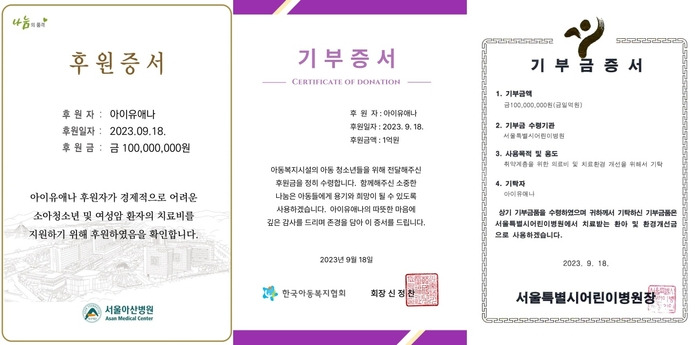 [2] 중앙일보 - 아이유는 기부 여신 어린이날 또 1억, 지금까지 총 50억 (https://www.joongang.co.kr/article/25247197)