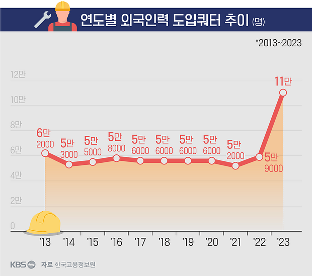 한국 정부는 불법 체류자를 줄이기 위해 여러 정책을 시행하고 있습니다. 예를 들어, 외국인력 도입 쿼터를 설정하여 합법적인 외국인 노동자의 수를 조절하고 있습니다. 2023년 외국인력 도입 쿼터는 총 110,000명으로, 산업별로 세분화되어 있습니다.