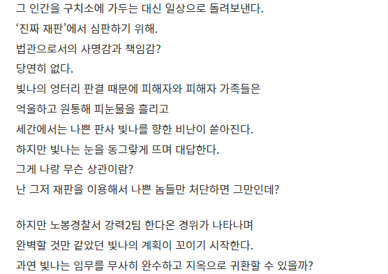 "지옥에서 온 판사"는 단순한 범죄 드라마가 아니라, 인간의 본성과 정의에 대한 깊은 질문을 던지는 작품이야. 강빛나의 성장과 한다온과의 관계는 이 드라마의 큰 매력 중 하나야. 이 드라마를 통해 정의란 무엇인지, 그리고 인간의 복잡한 감정에 대해 다시 한번 생각해보는 기회를 가져보길 추천해.