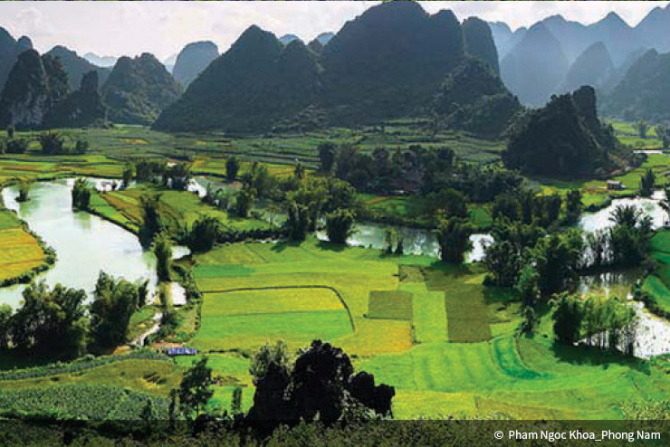 카오 방(Cao Bang) 지질공원은 베트남 북동부 산악 지역에 위치한다. 지질학적으로는 고생대 석회암층으로 이루어진 동쪽 지역, 퇴적층과 현무암으로 이루어진 서쪽 지역으로 크게 나누어질 수 있으며, 풍부한 전통과 문화적 정체성을 가진 9개 민족이 이 지역에 흩어져 살고 있다.