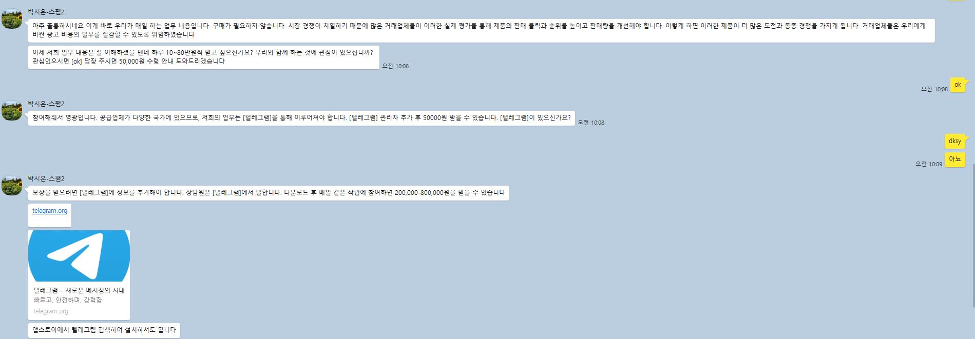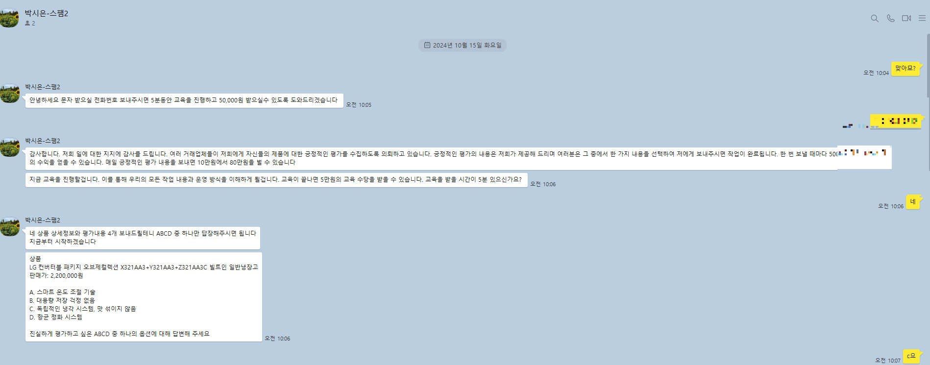 여기서 시키는 대로 010-2962-6698에 답변을 달기 시작했다