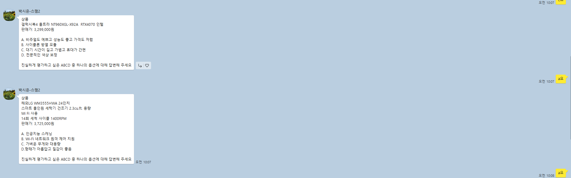 질문에 '네' 하니 또 다시 답변이 오기 시작했다.