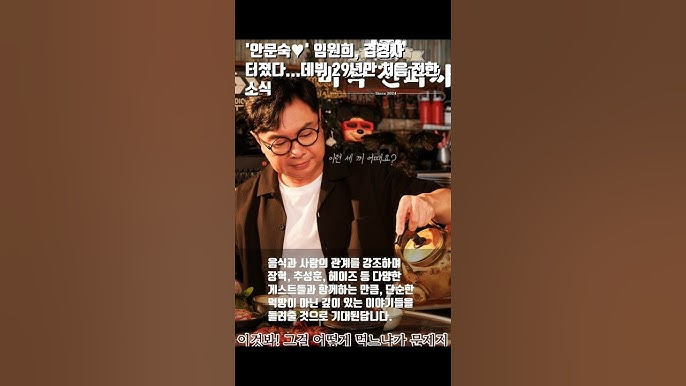 임원희의 새로운 도전인 '임원희의 미식전파사'는 그동안 볼 수 없었던 새로운 먹방을 선보일 것으로 기대됩니다. 많은 사랑과 관심 부탁드립니다! 💖