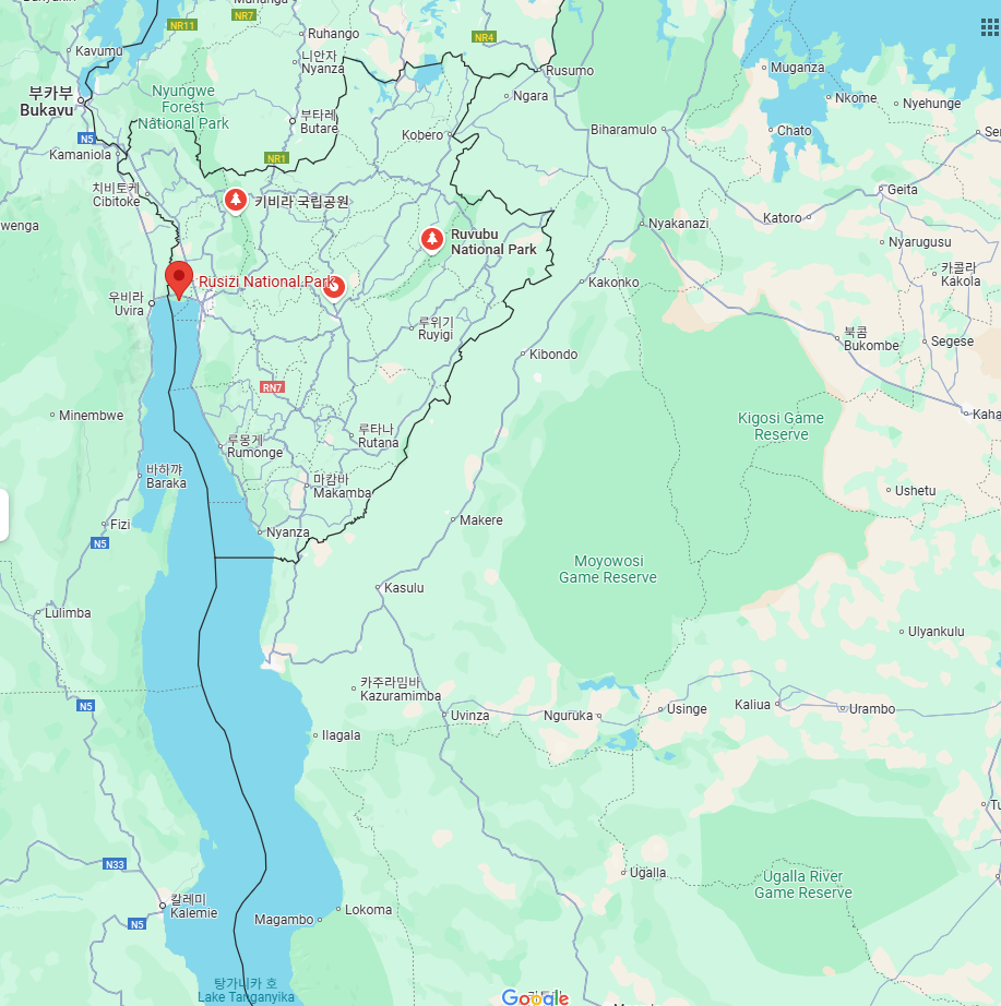 루즈지 국립공원은 부룬디의 대표적인 자연 보호구역으로, 다양한 야생 동물(하마, 악어, 물새 등)을 관찰할 수 있는 곳이에요.