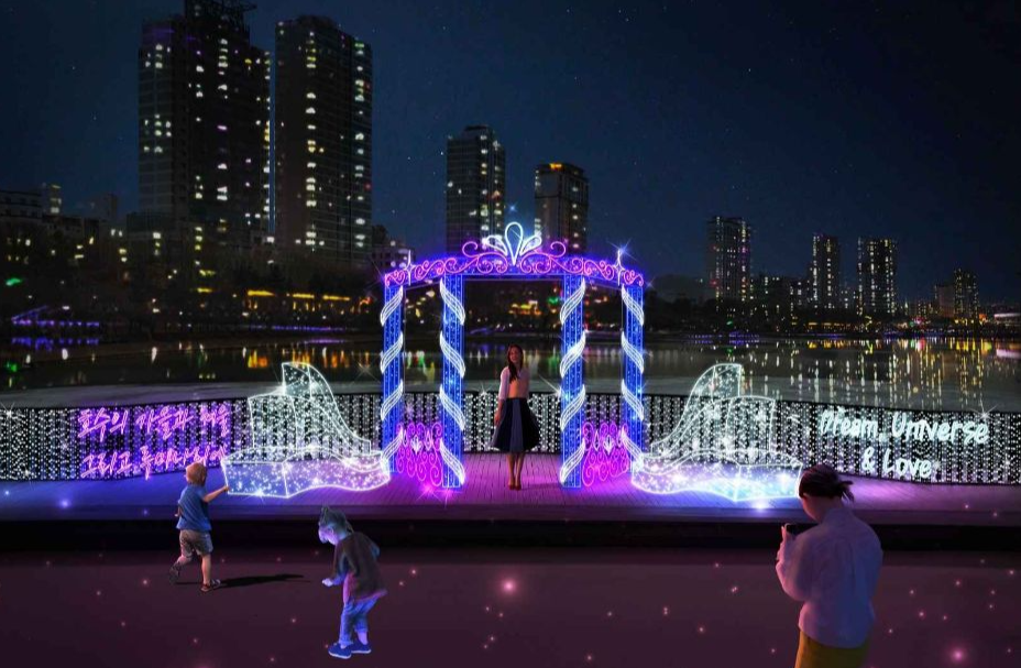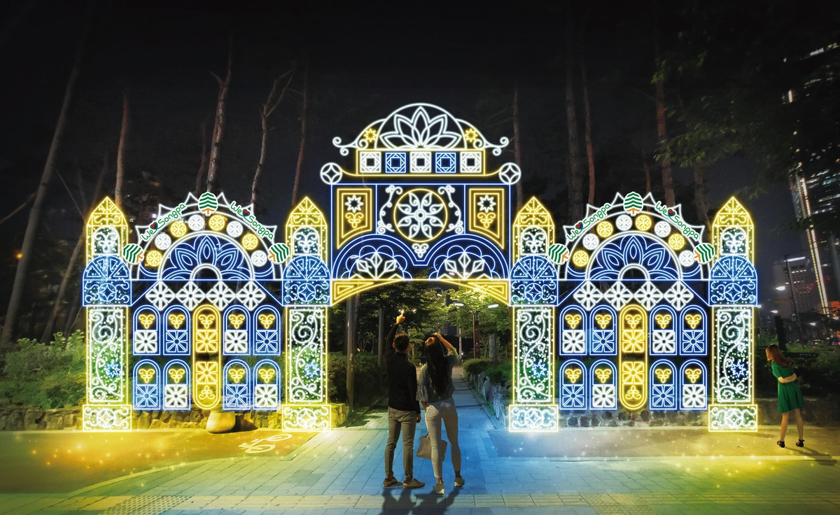 루미나리에는 조명으로 건축물을 만들거나 장식하는 축제를 의미해. 빛의 예술 또는 빛의 조각이라고도 불리는데, 다양한 조명과 빛 조형물들이 석촌호수를 환상적으로 꾸며줄 거야.