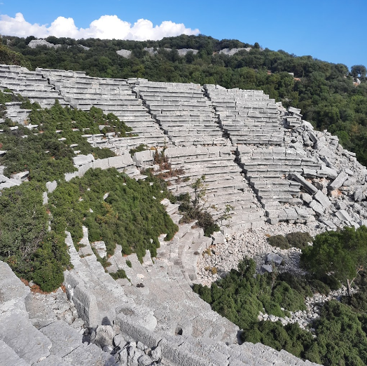 카니르아(Kyaneai)는 고대 리키아 문명의 유적이 잘 보존된 곳으로, 역사와 자연이 어우러진 아름다운 경관을 자랑합니다. 이곳은 고대 도시의 흔적을 통해 과거의 삶을 엿볼 수 있는 특별한 장소입니다. 특히, 카니르아의 극장은 이 유적지에서 가장 인상적인 건축물로, 고대 극장의 구조와 장엄함이 잘 보존되어 있습니다.