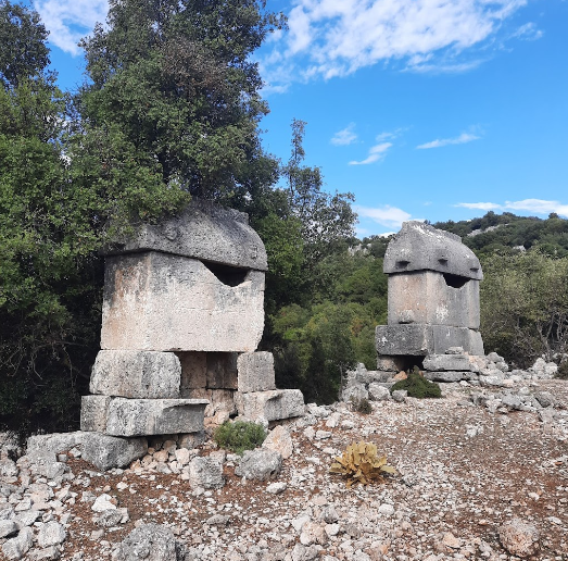 카니르아는 리키아 문명의 전형적인 암석 무덤과 석관(sarcophagi)들이 풍부하게 남아 있습니다. 산비탈에 새겨진 리키아식 암석 무덤은 고대 장례 문화를 보여주는 중요한 유물입니다. 무덤에는 독특한 조각과 기념비적인 부조가 새겨져 있어, 당시의 예술과 종교적 관념을 엿볼 수 있습니다. 이러한 무덤들은 고대 사람들의 삶과 죽음에 대한 철학을 이해하는 데 중요한 단서를 제공합니다.