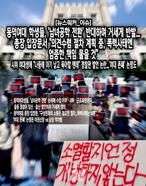 [4] 경향신문 - “여대가 필요한 이유”···'동덕여대 공학 전환 논의'에 쏟아진 ... (https://www.khan.co.kr/national/national-general/article/202411121756001)