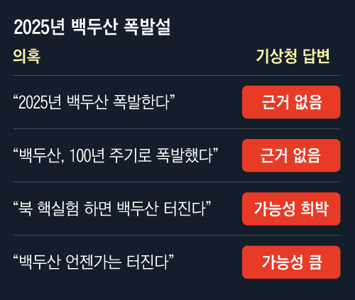 [3] YTN - 백두산이 2025년 폭발한다고?...기상청 "가능성 희박" (https://www.ytn.co.kr/_ln/0108_202304300006035219)