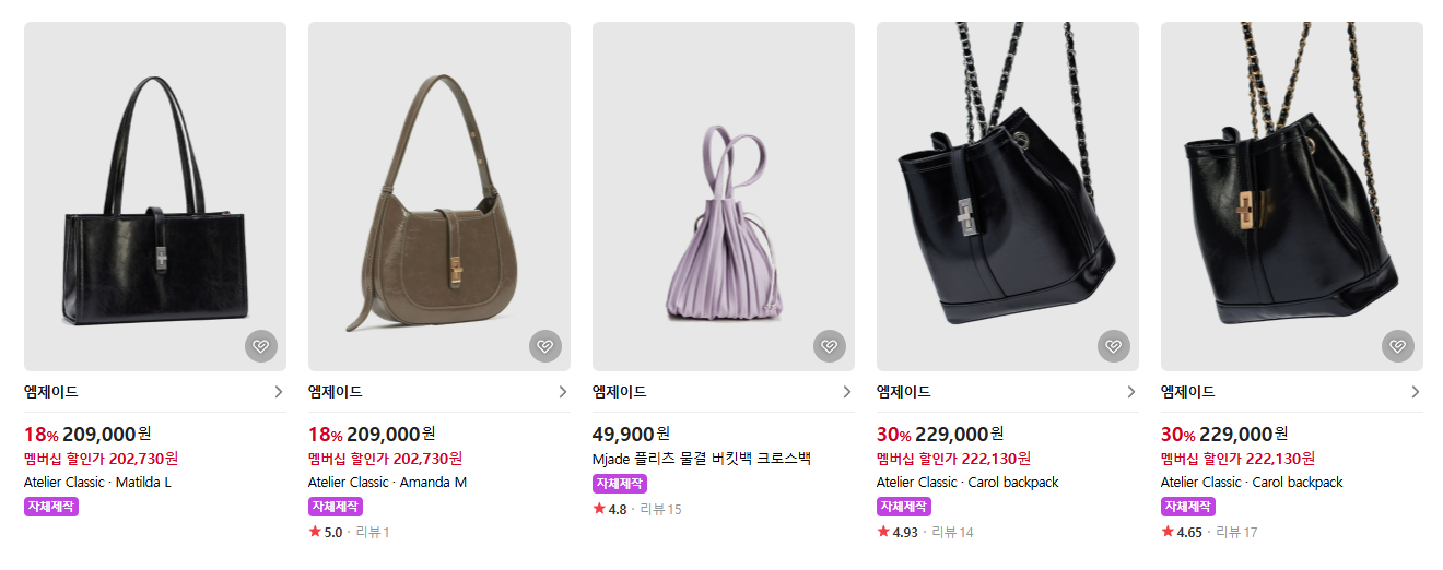 엠제이드가방 중에서 추천할 만한 제품들을 소개할게.
