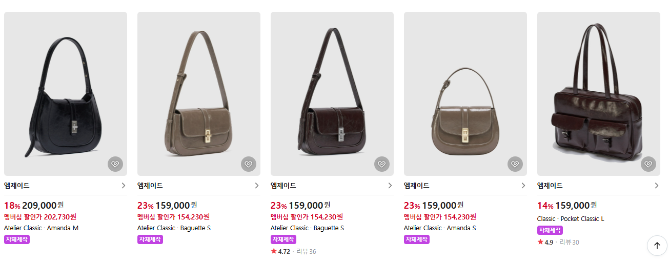 에서 볼 수 있는 다양한 핸드백 스타일은 각기 다른 매력을 가지고 있어. 브라운, 블랙, 크림색 등 다양한 색상으로 나와서 어떤 룩에도 잘 어울려.