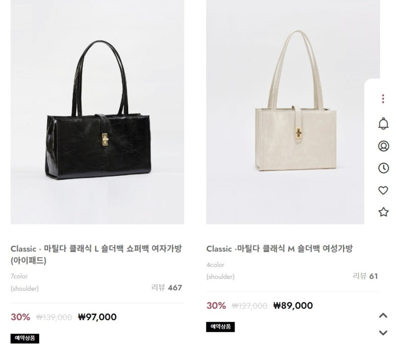 - 클래식 L 숄더백- 심플한 디자인으로 어떤 옷에도 잘 어울려. 가격은 97,000원이야.