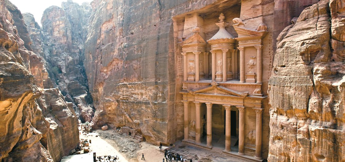 은 나바테아 왕들의 영묘로 여겨지는 웅장한 사원인 알 카즈네(Al-Khazneh)의 경외심을 불러일으키는 광경을 보