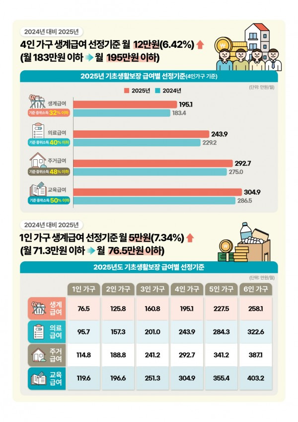 - 2025년 생계급여 소득기준액 및 가구별 인상금액, 변경사항