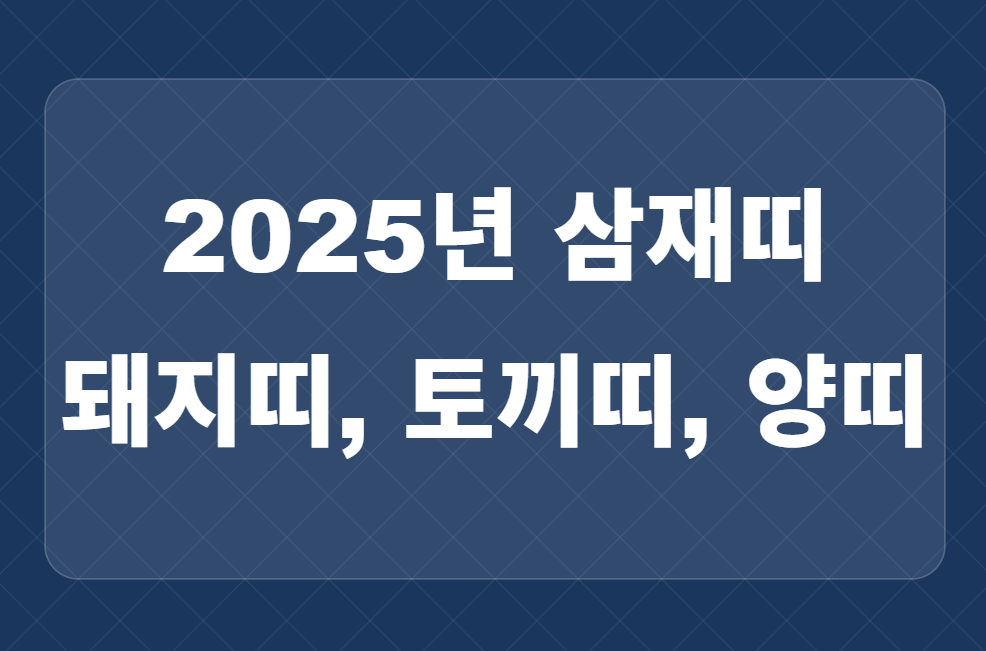 2025년 삼재띠에 해당하는 띠들은 각자의 운세가 다르게 나타날 수 있습니다. 돼지띠는 복삼재로 전화위복의 기회가 있을 수 있으며, 토끼띠와 양띠는 신중함이 요구되는 해가 될 것입니다. 이 해에는 특히 건강과 재물에 대한 주의가 필요합니다.