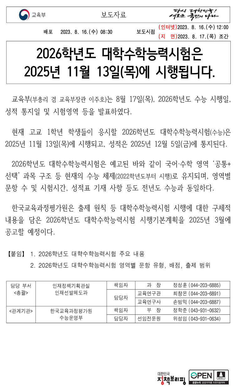[2] 나무위키 - 2026학년도 대학수학능력시험/정보 (https://namu.wiki/w/2026%ED%95%99%EB%85%84%EB%8F%84%20%EB%8C%80%ED%95%99%EC%88%98%ED%95%99%EB%8A%A5%EB%A0%A5%EC%8B%9C%ED%97%98/%EC%A0%95%EB%B3%B4)