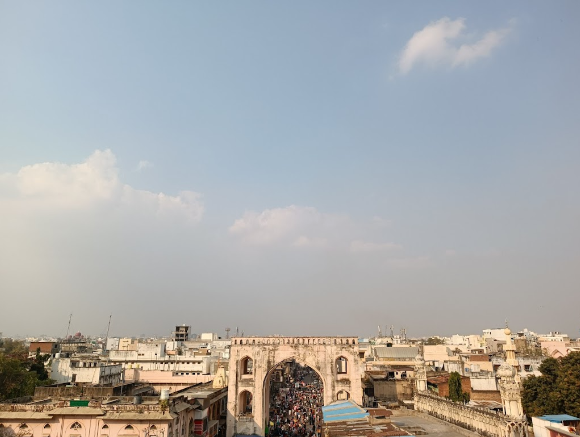 차르미나르는 1591년에 건설이 시작되어 1594년에 완공되었습니다. 당시의 왕인 쿠타브 샤히 왕조의 궁전 건축가가 설계한 이 건축물은 당시 하이데라바드의 중요한 교차로에 위치하여 상징적인 의미를 갖고 있었습니다. 전설에 의하면, 차르미나르는 당시 이 도시에서 발생한 전염병을 종식시키기 위해 지어졌다고 전해집니다. 네 개의 기둥 이라는 뜻을 지닌 차르미나르는 그 이름 그대로 네 개의 대형 아치가 인상적으로 배치되어 있습니다. 이 아치들은 하이데라바드 시내를 가로지르는 네 개의 주요 도로를 연결하는 구조적 의미를 내포하고 있습니다.