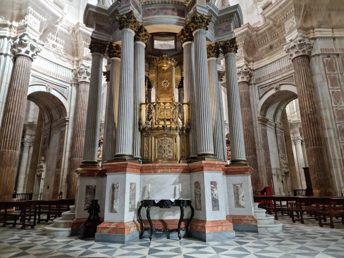 대성당 내부는 정말 아름다워. 스페인 전역의 오래된 대성당과 수도원에서 가져온 많은 그림과 유물이 전시되어 있어. 특히, 지하실에는 카디스 출신의 유명한 작곡가 마누엘 데 파야와 시인이자 극작가인 호세 마리아 페만이 묻혀 있어.