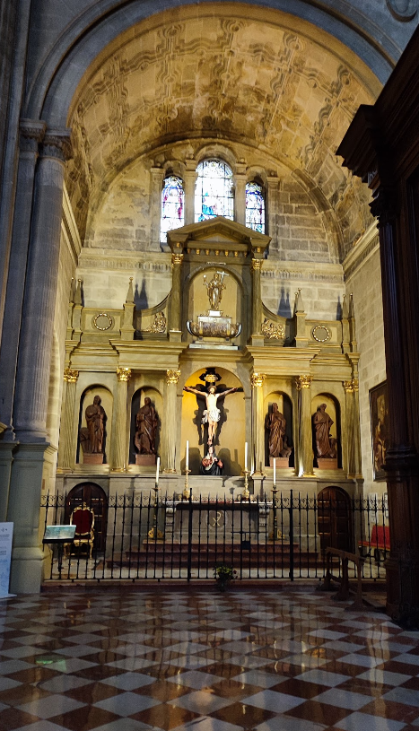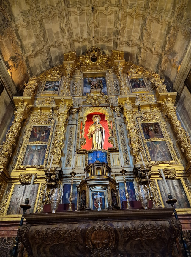 대성당 내부는 화려한 제단과 아름다운 스테인드글라스로 장식되어 있습니다. 특히, 제단은 성당의 중심부에 위치하며, 그 화려함은 방문객들에게 깊은 인상을 남깁니다. 내부의 고딕 양식의 아치와 기둥들은 성당의 웅장함을 더욱 강조합니다.