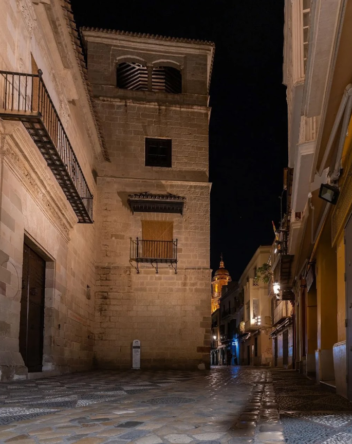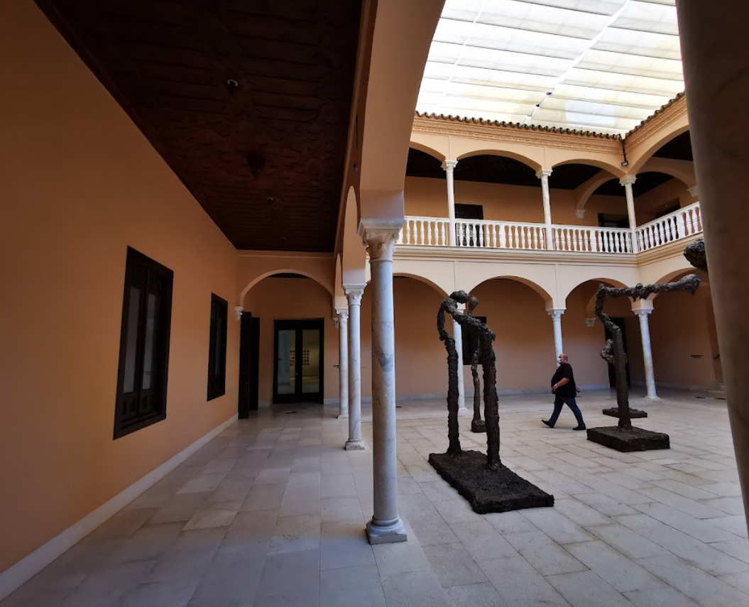 이곳은 16세기 르네상스 건축 양식으로 지어진 부어나비스타 궁전(Palacio de Buenavista) 안에 자리하고 있습니다. 외관은 크림색과 노란색의 조화로 이루어져 있으며, 많은 녹색 셔터가 달린 창문과 장식적인 발코니가 특징입니다. 이 건물 자체가 예술 작품처럼 느껴집니다.
